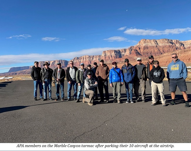 On Saturday, December 2 we had a wonderful day trip to Marble Canyon, AZ. Perfect weather existed along the entire route, and aircraft came from numerous directions including southern Utah, Lake Havasu, and multiple Phoenix area airports. In total, 10 aircraft and 15 pilots and